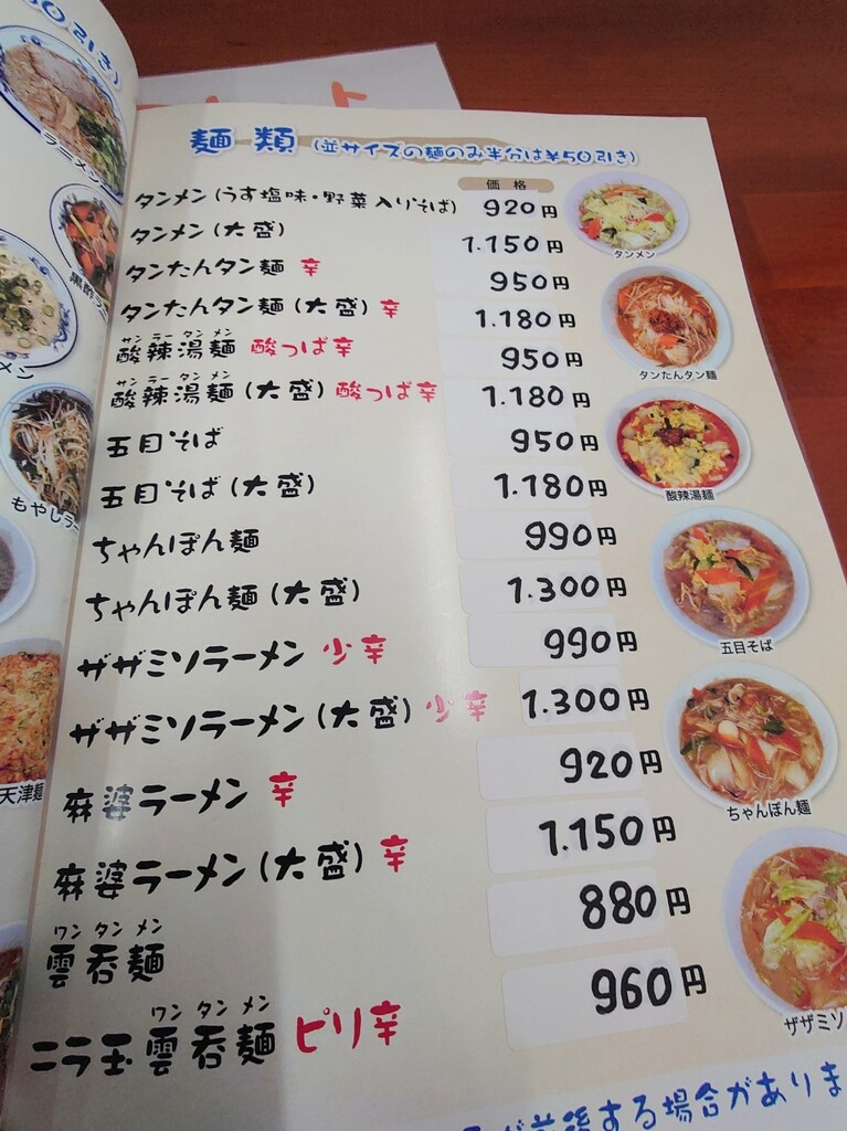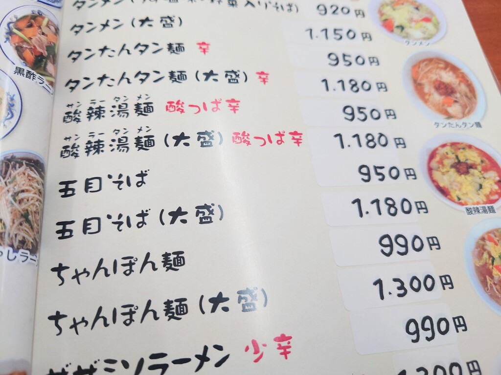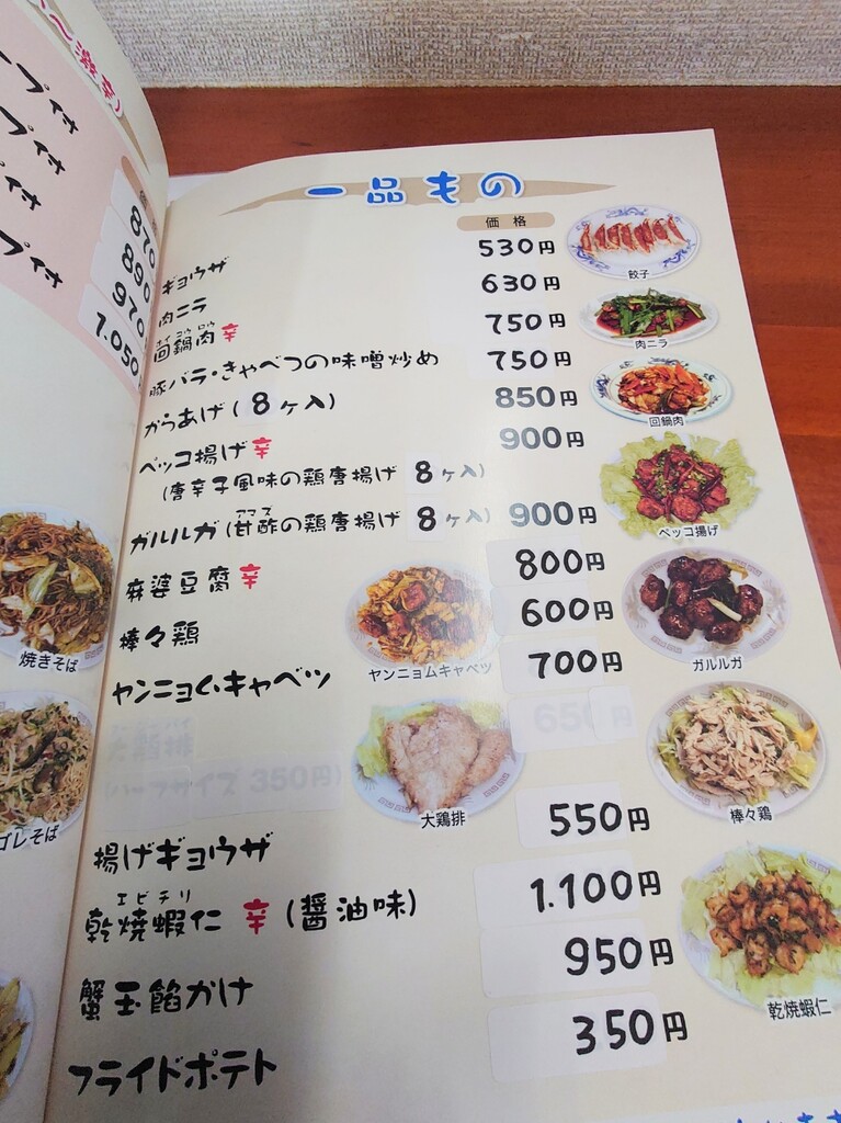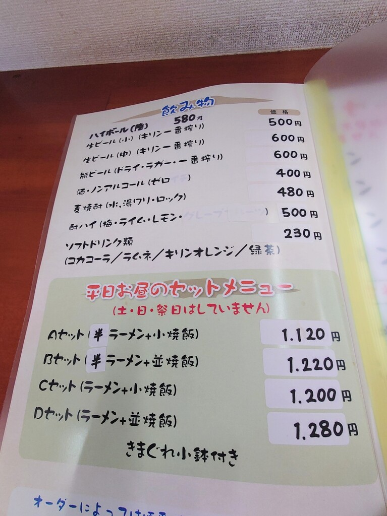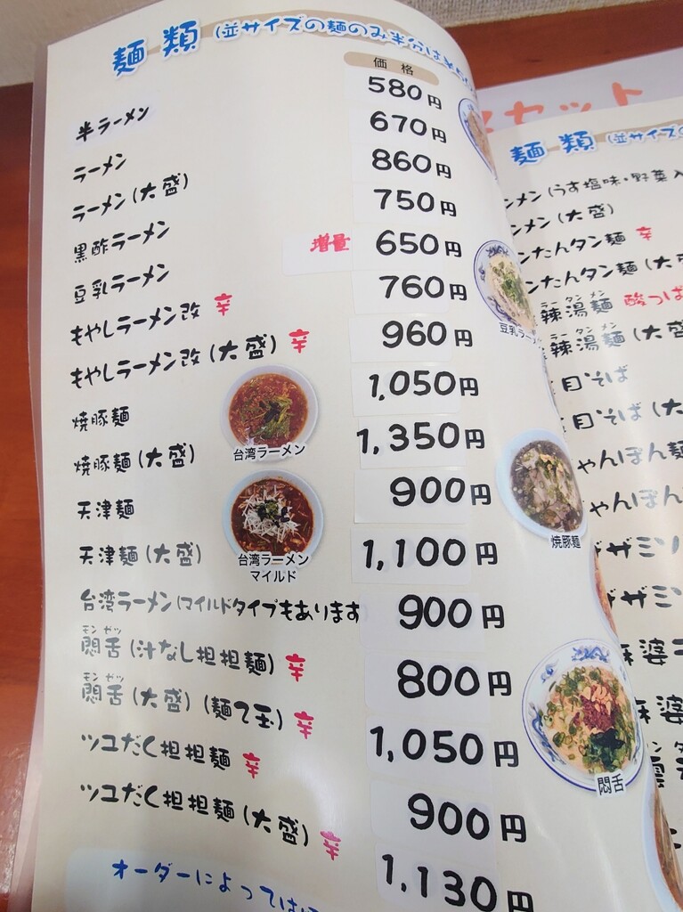 ↓お店に入り、メニューの一部はこんな感じ。