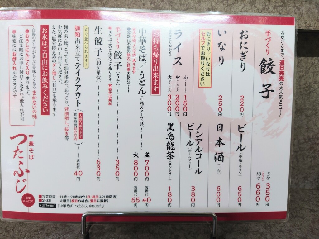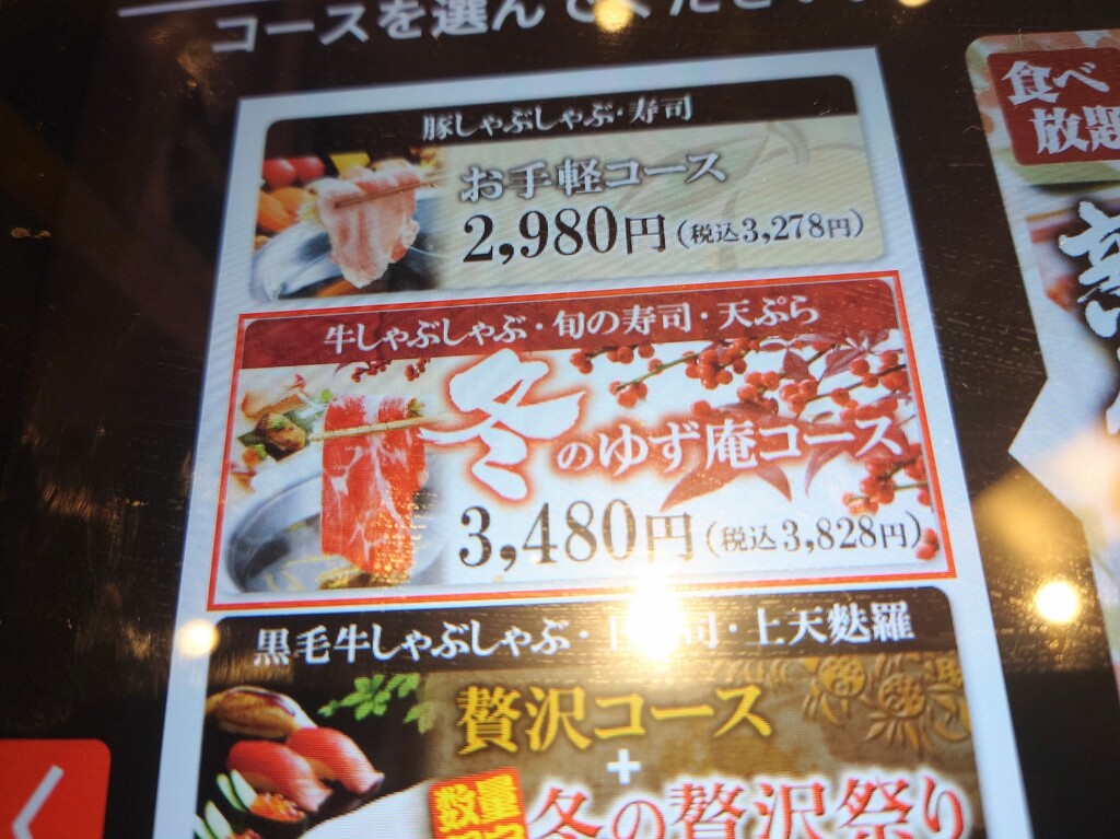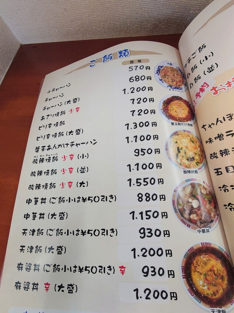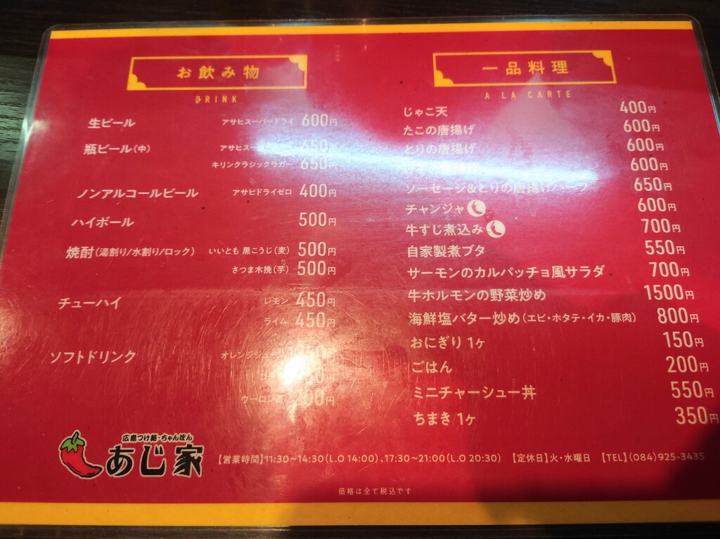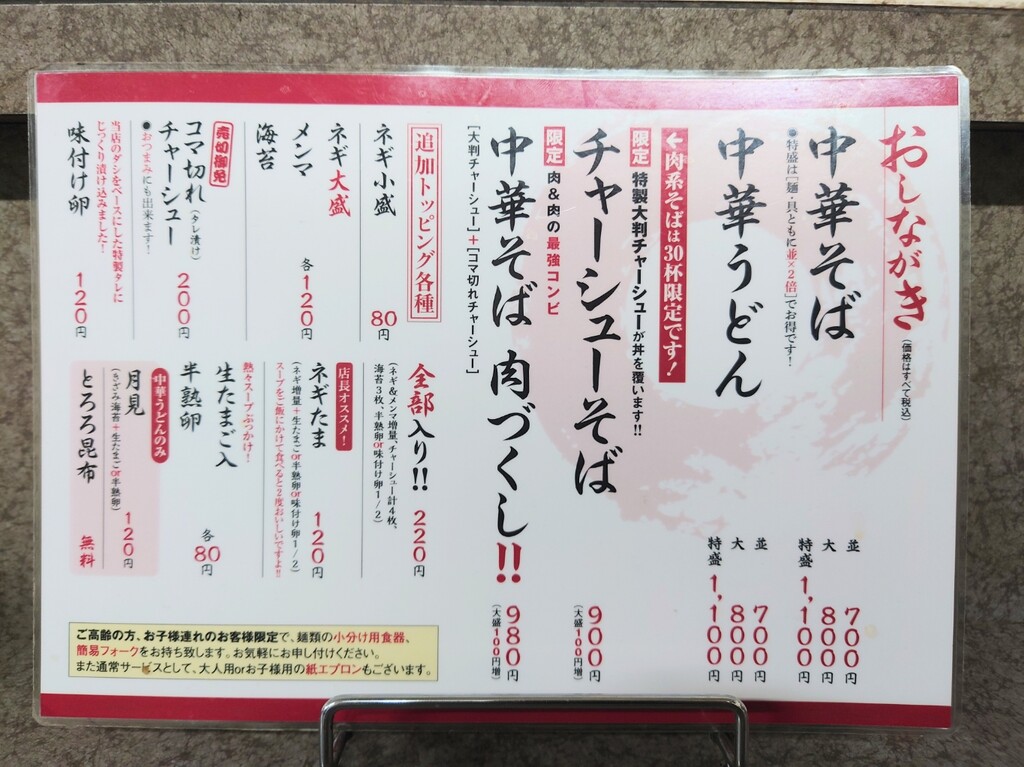 ↓お店に入り、メニューの一部はこんな感じ。