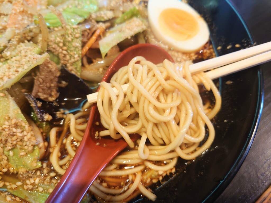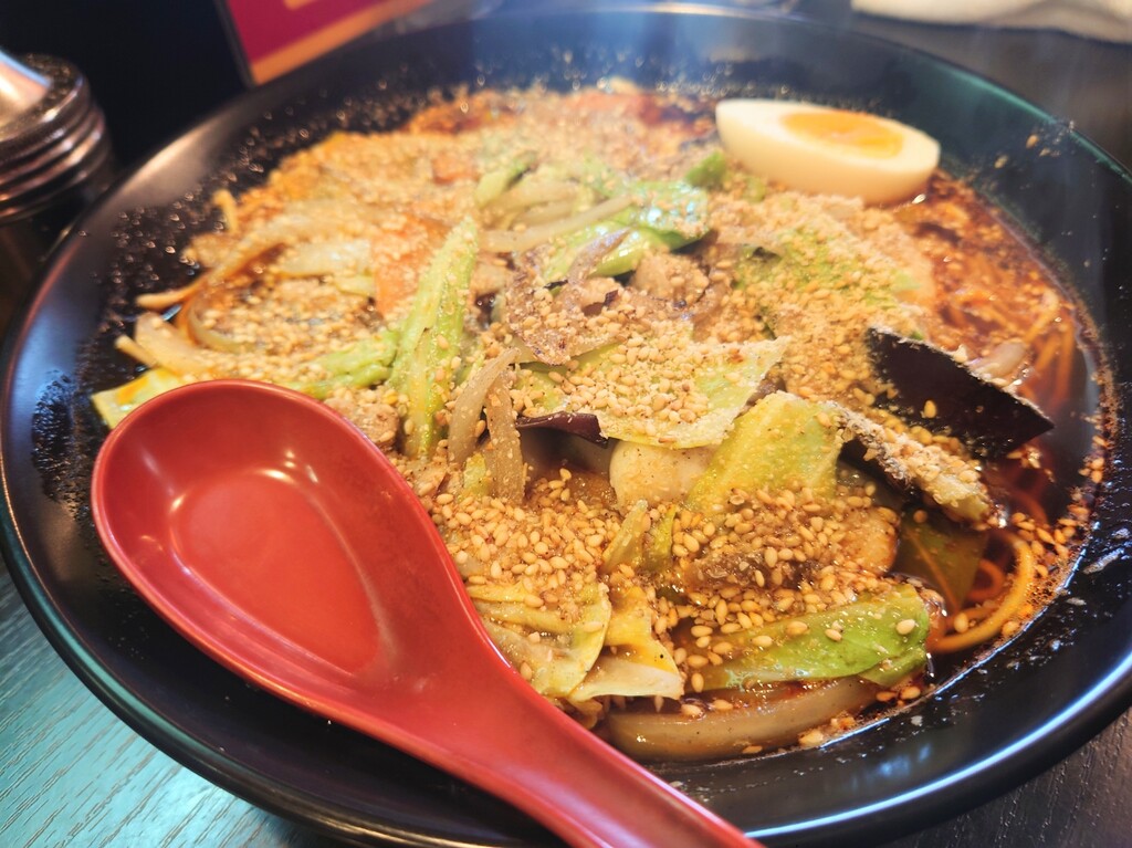 こちらのお店、台湾ラーメンが一番人気なんでしょうが、この黒ごま担々麺も美味しくて大好きな一品。