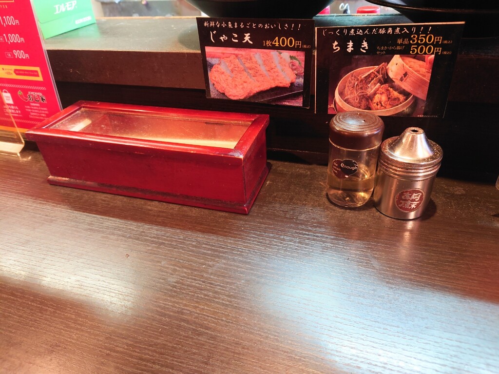 ↓カウンター席にあった調味料など。