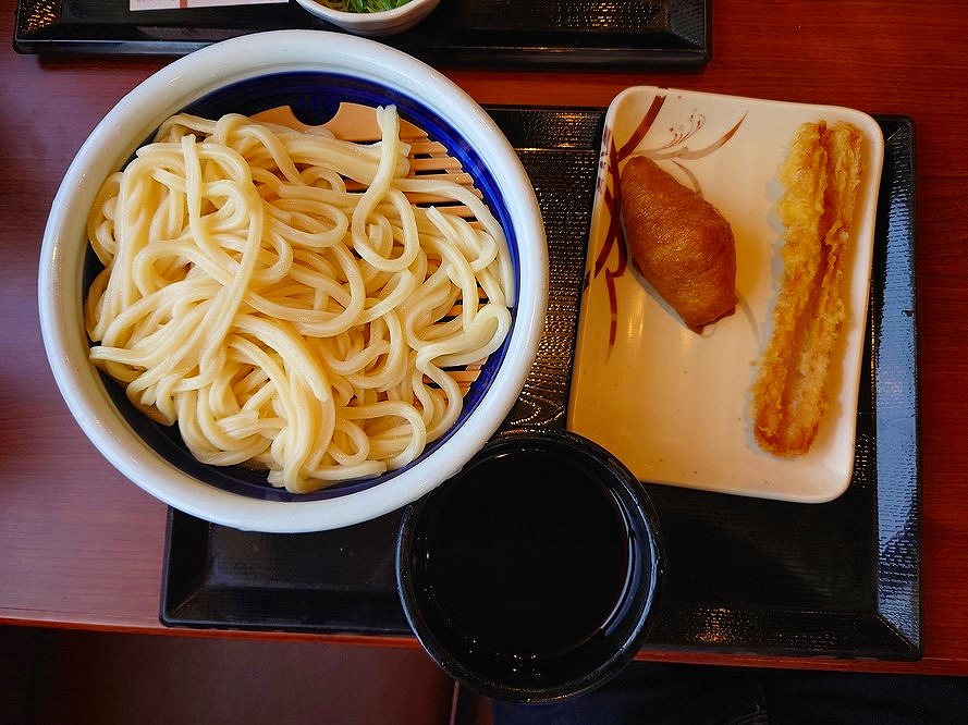↓「ざるうどん・得」「ちくわ天」「いなり寿司」がこちら~♪