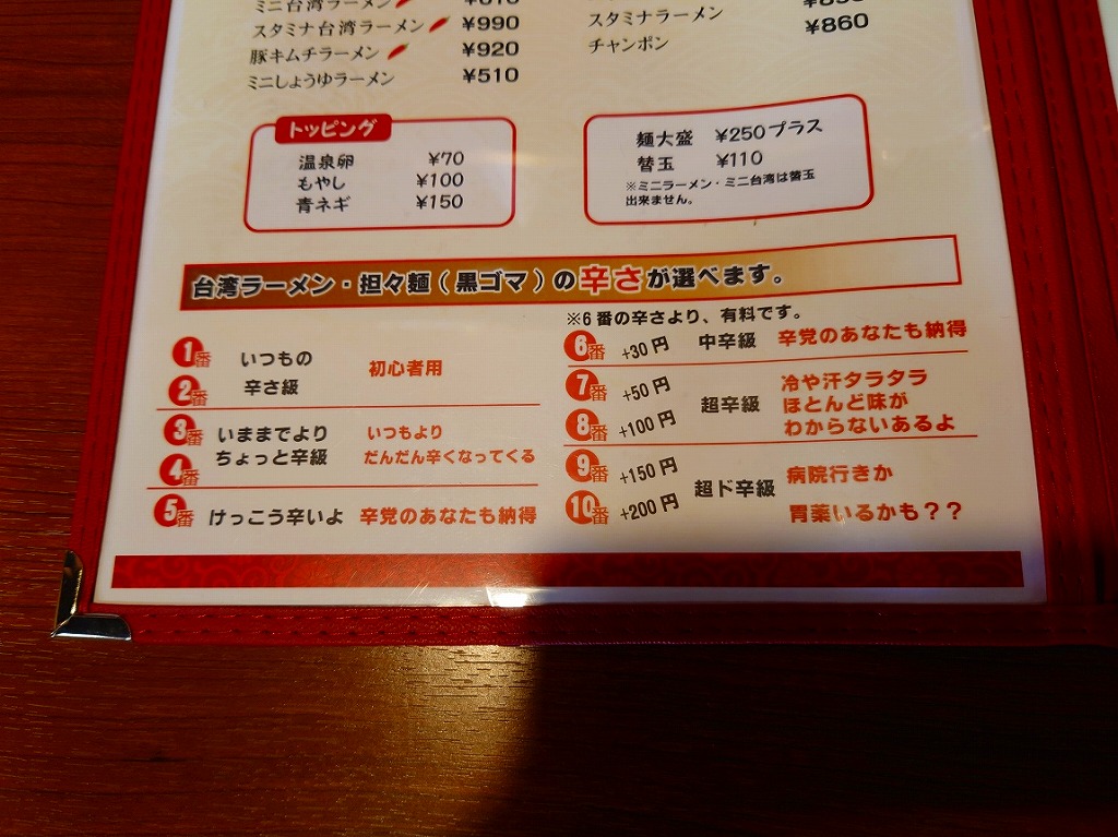 辛さ4番ではちょっと辛い程度で、熱い台湾ラーメンの辛さよりは辛さがおとなしめ。