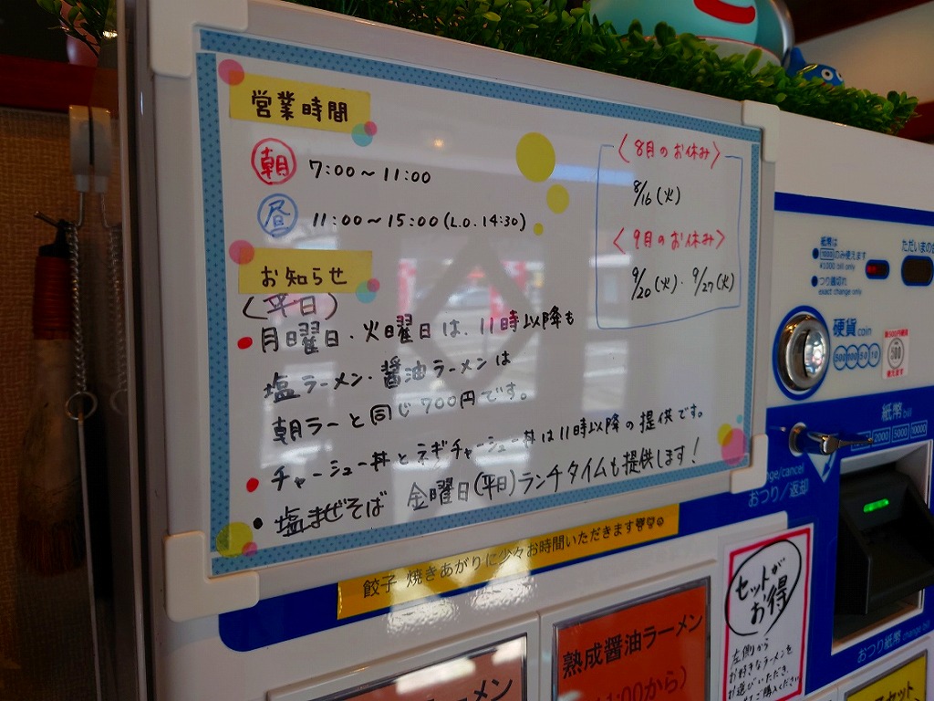 曜日によってはランチタイムでも朝ラー価格の日があるので、お店のインスタグラムをチェックして行った方がいいかも(・・?