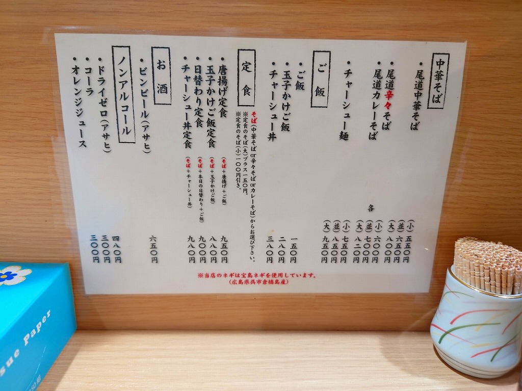 ↑今回は、「尾道中華そば・大」¥800をお願いします(^^)