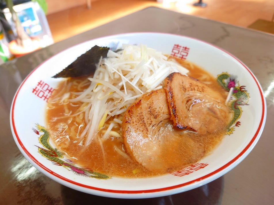 白髪ねぎや海苔が乗ってて、この辺りでは見かけないビジュアル。