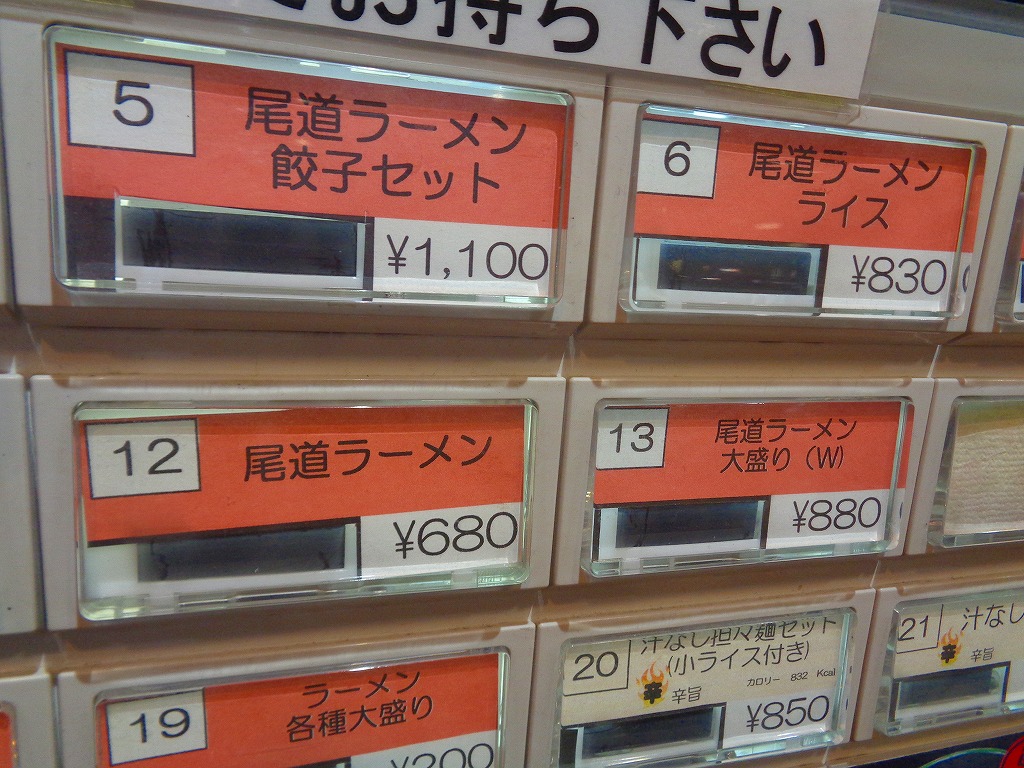 ↑「尾道ラーメン大盛り」は200円UPなので諦めて、普通の「尾道ラーメン」¥680の食券を購入して店員さんに渡します(^-^;