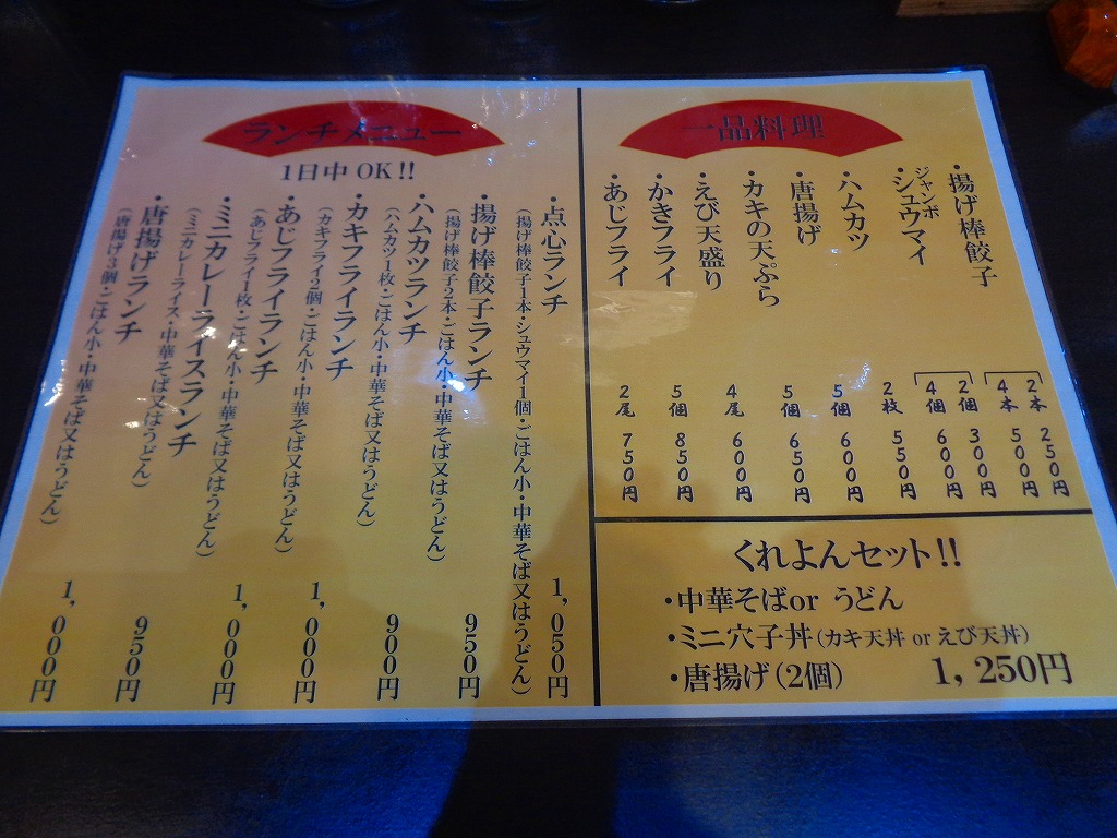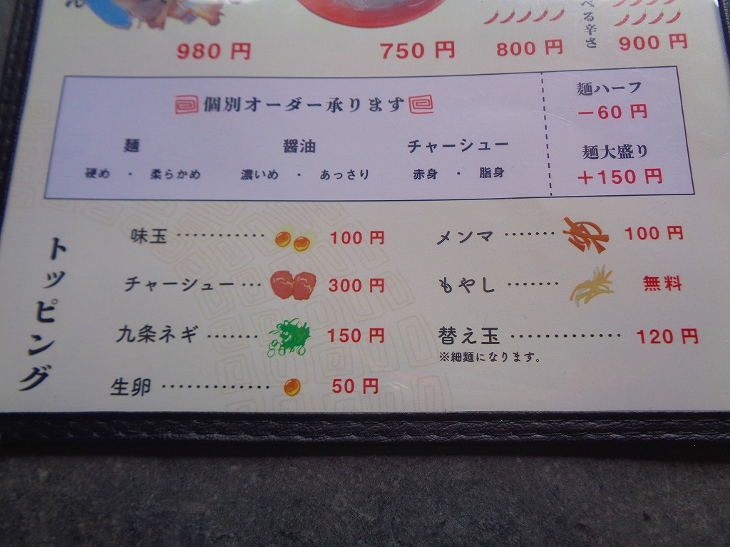 ↓反射して見にくいけど、メニューの一部はこんな感じでしたよ。