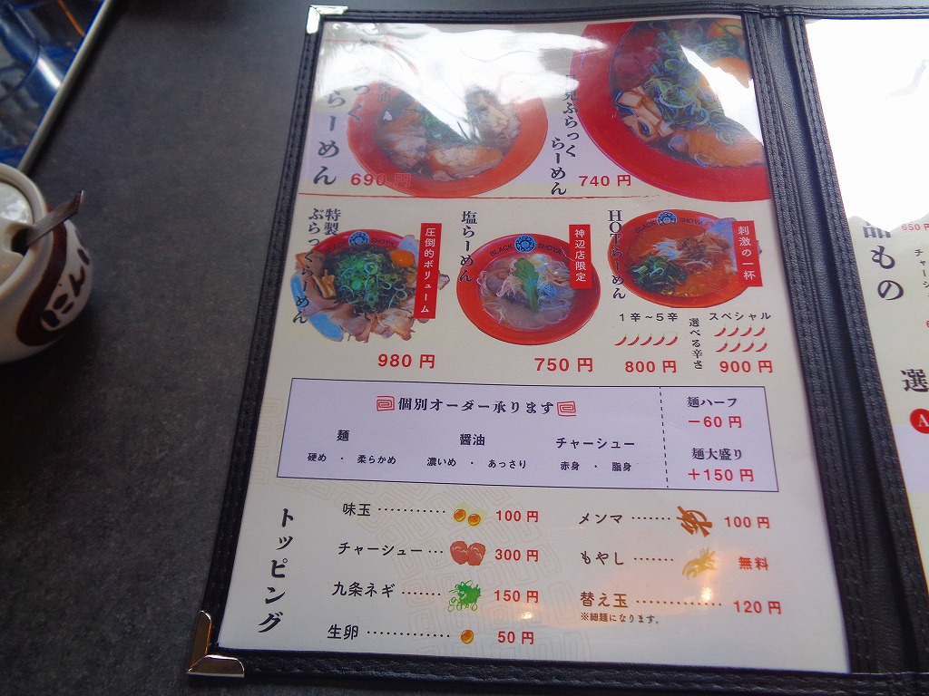 ↑今回は、「熟成醤油ぶらっくらーめん」に無料トッピングのもやしをお願いします(^^)