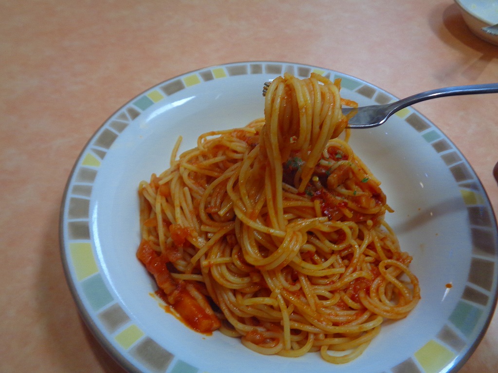 ↑陽がよく当たる席だったからか、思ってたほどスープは黒くなかった(^-^;