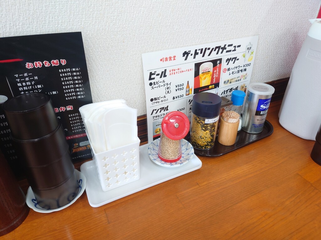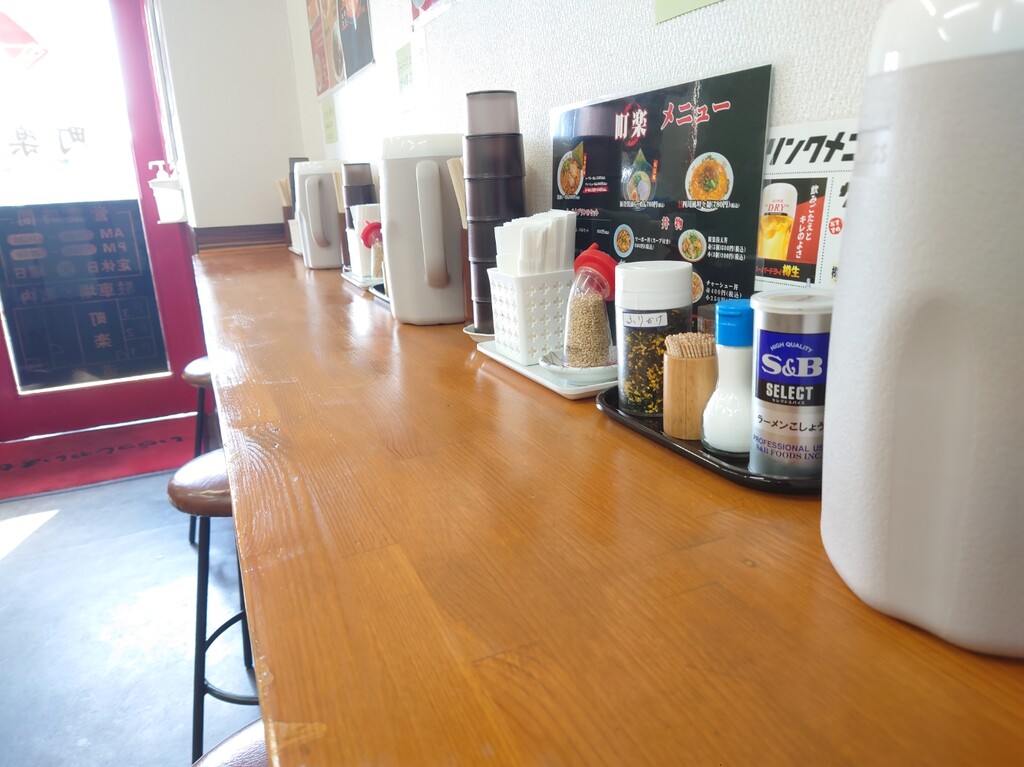 ↓座ったカウンター席の調味料などはこんな感じでしたよ。