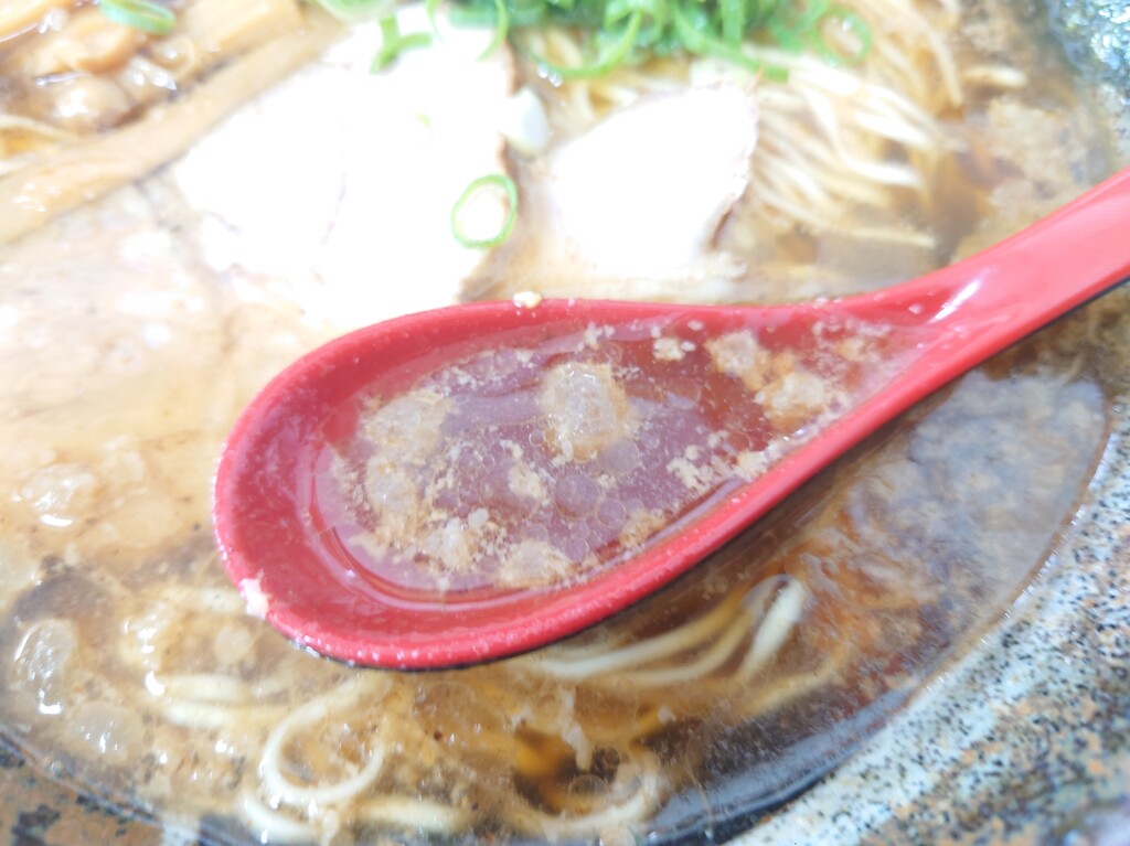 熊本ラーメンのイメージは濃いめコッテリのスープのイメージでしたが、見た目や思ってたのと違って意外とあっさりとしたスープ。