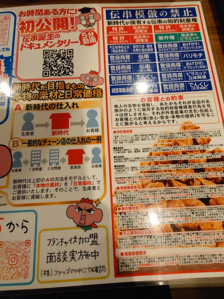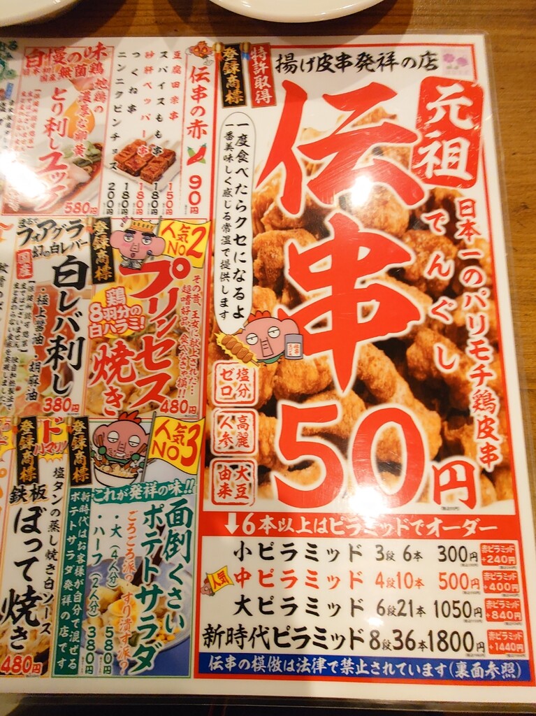 ↑このお店の名物「伝串」1本55円!