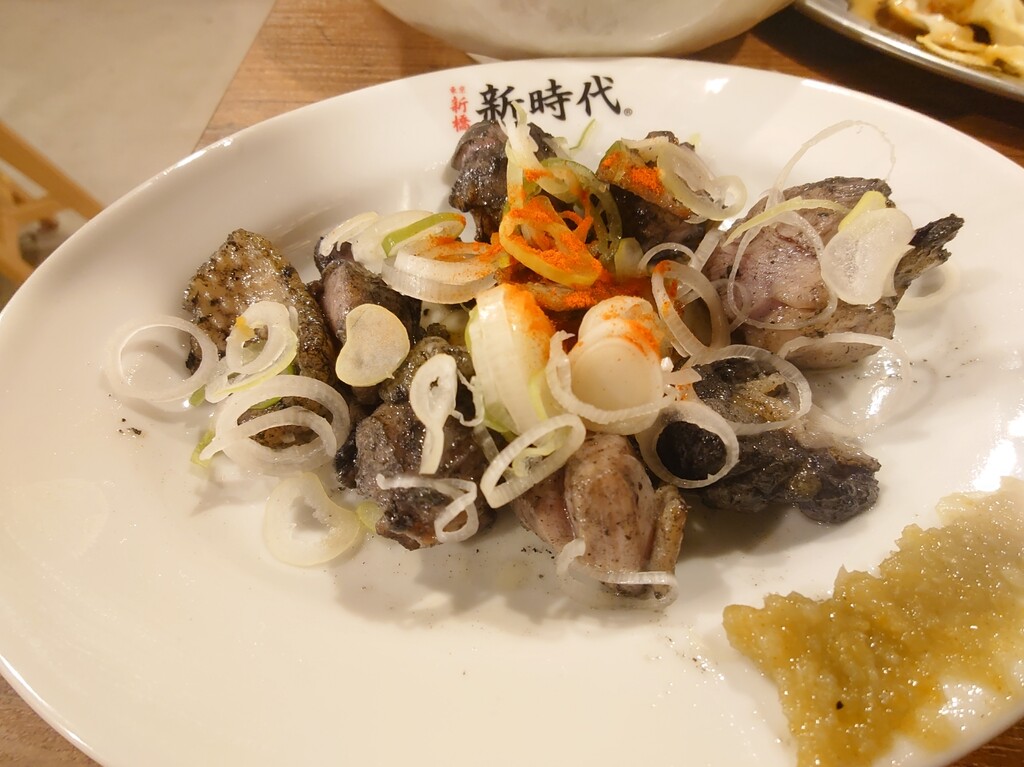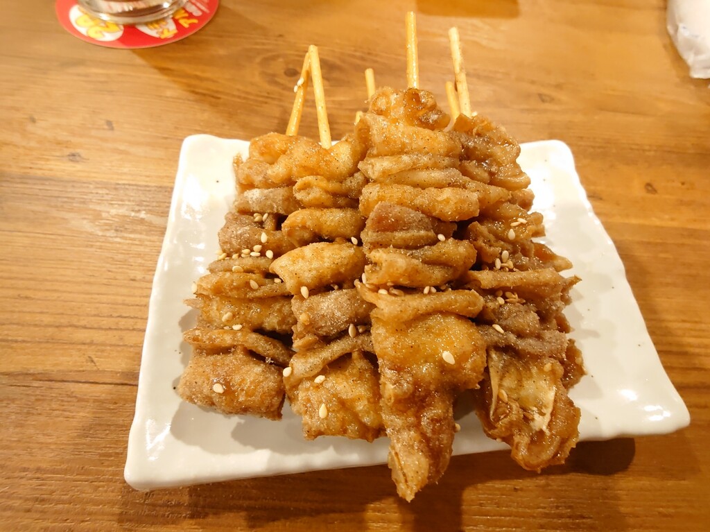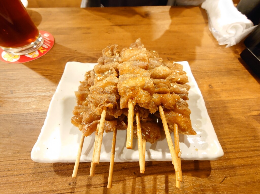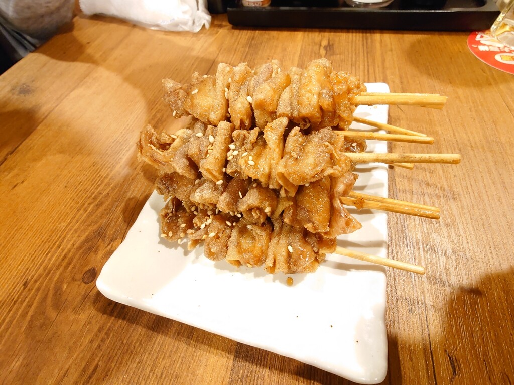 鳥皮を揚げたあとに味付けしてるそうで、通常は常温で出すらしいのですが、忙しすぎて冷ます時間なんてないんでしょうね。