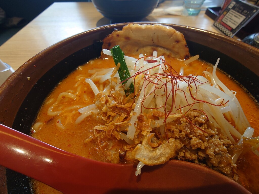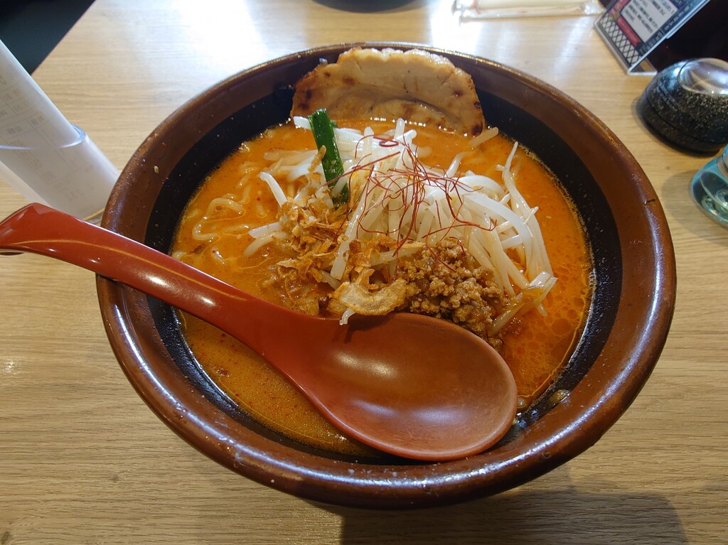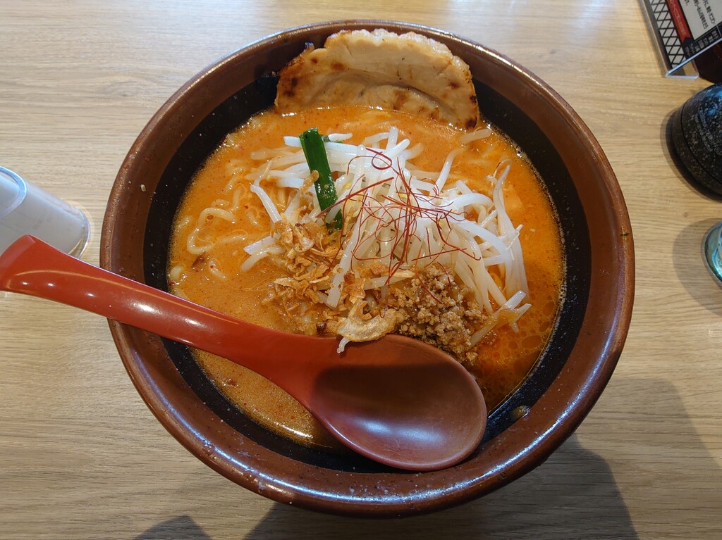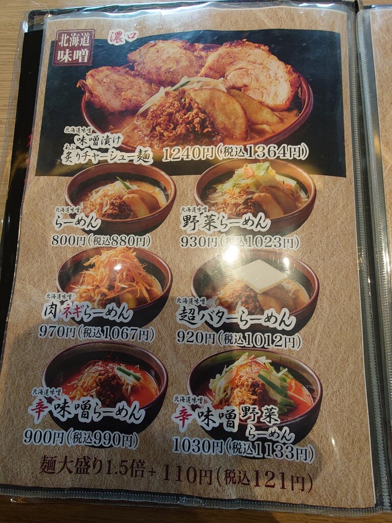 今回は「辛味噌らーめん・麺大盛り」に「味噌漬けあぶりチャーシュー」を一枚トッピング。計¥1,276をお願いします(^^)