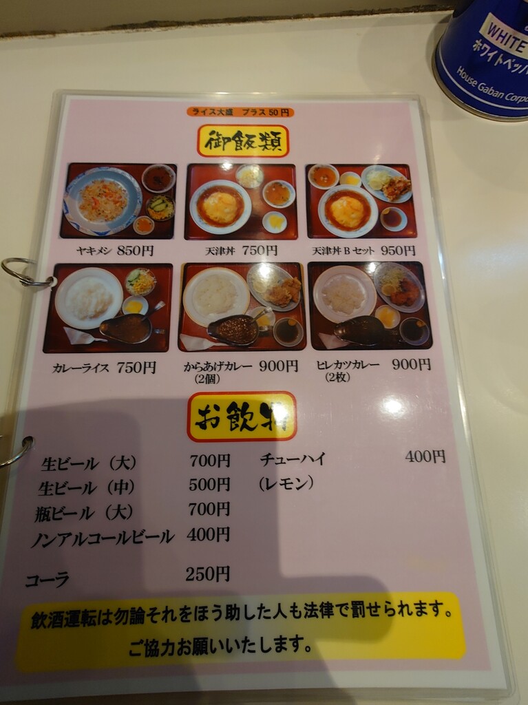 ↓お店に入り、メニューの一部はこんな感じでしたよ。