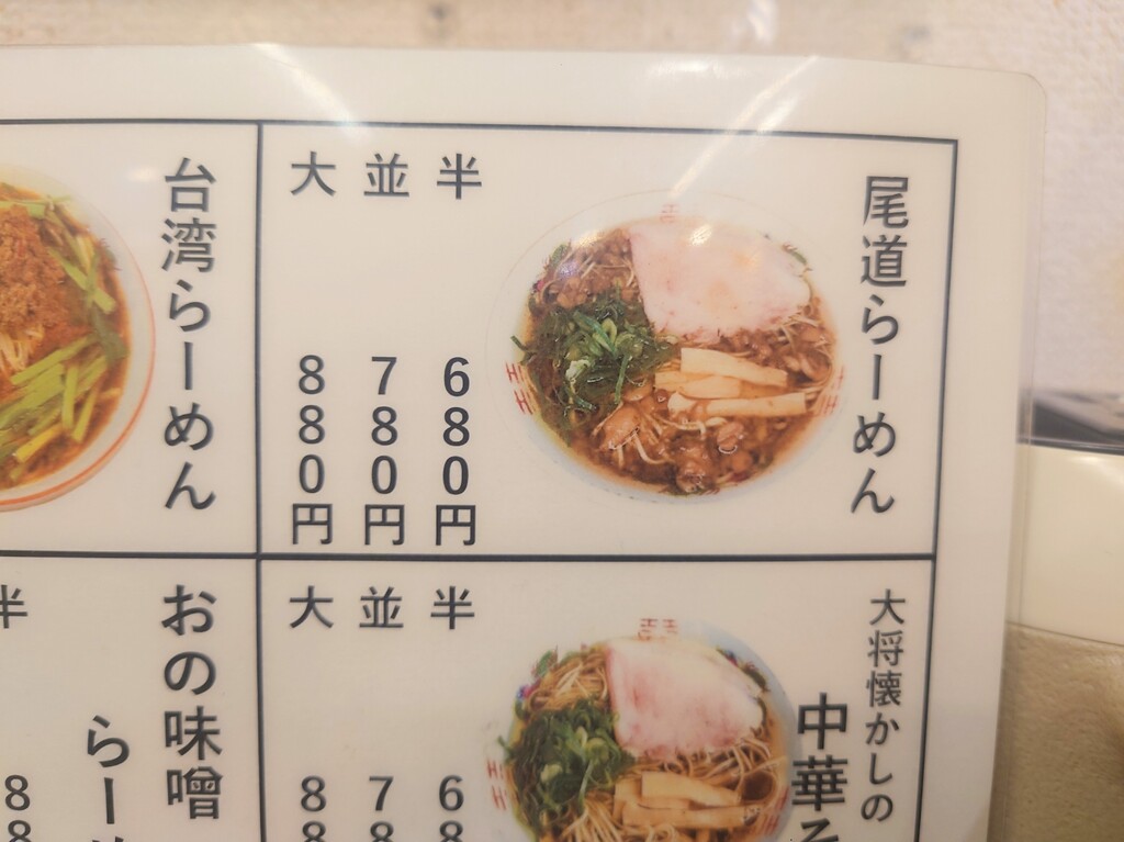 以前あった、担々麺や餃子は休止のよう。