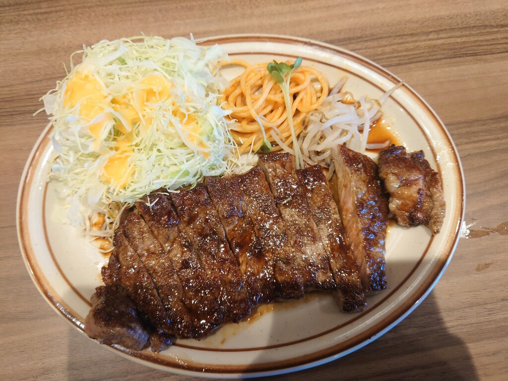 ↓お肉を一切れ食べたあとにカレーライスとステーキを一緒に撮影(^^)