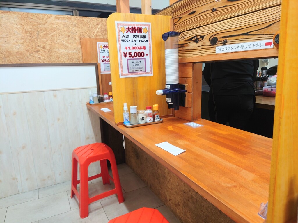 ↓行ったときは満席で暫く待つことになり、あとあと奥のテーブル席へ案内されます