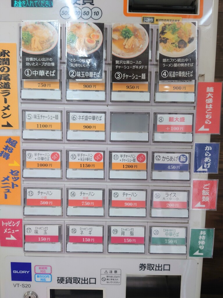 ↑今回は「中華そば」¥750と「麺大盛」¥100の食券を購入します(^^)