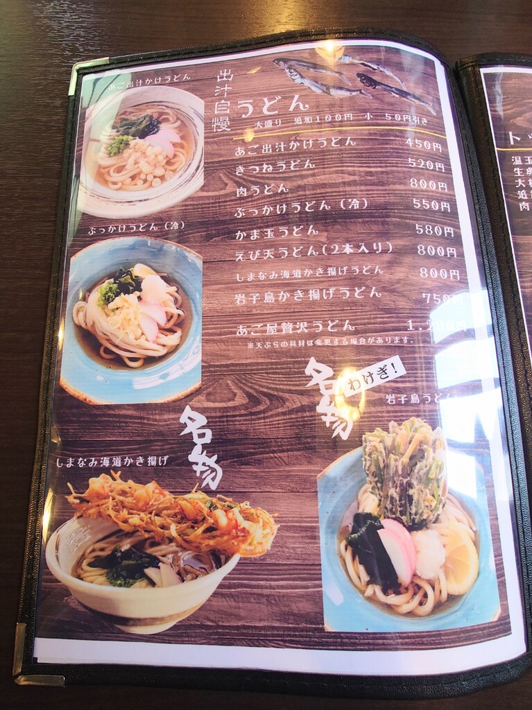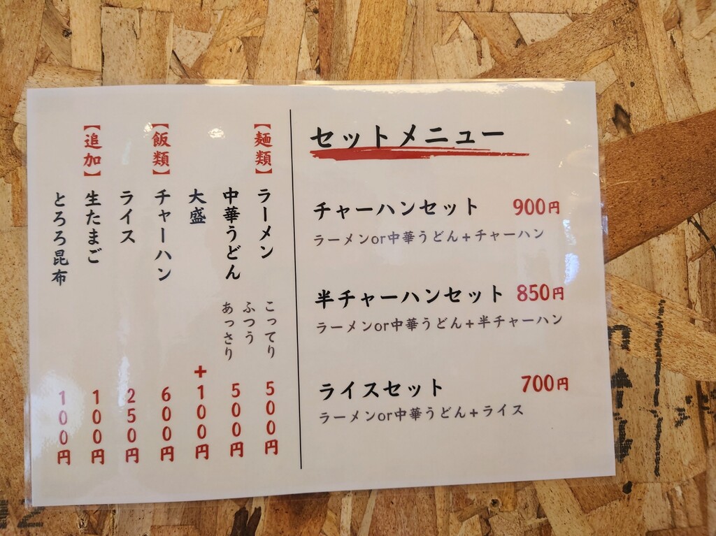 うどん以外はラーメンと同じ内容のよう。
