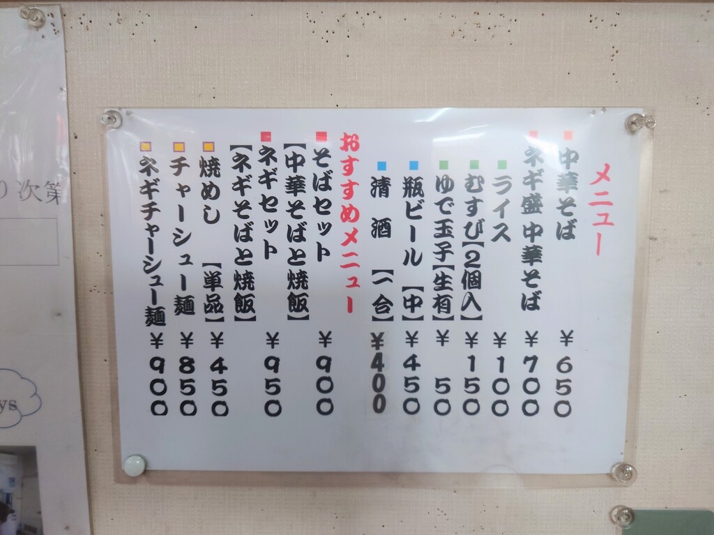 ↓お店に入り、メニューはこんな感じ。