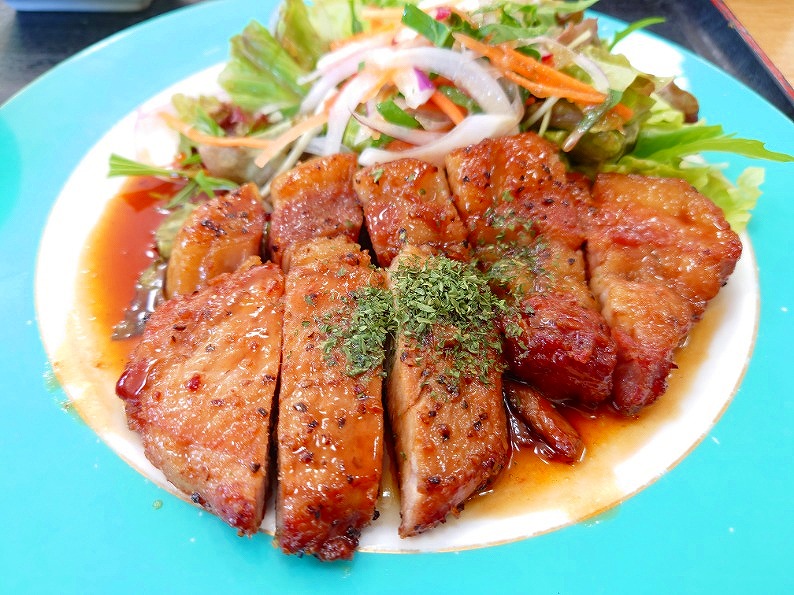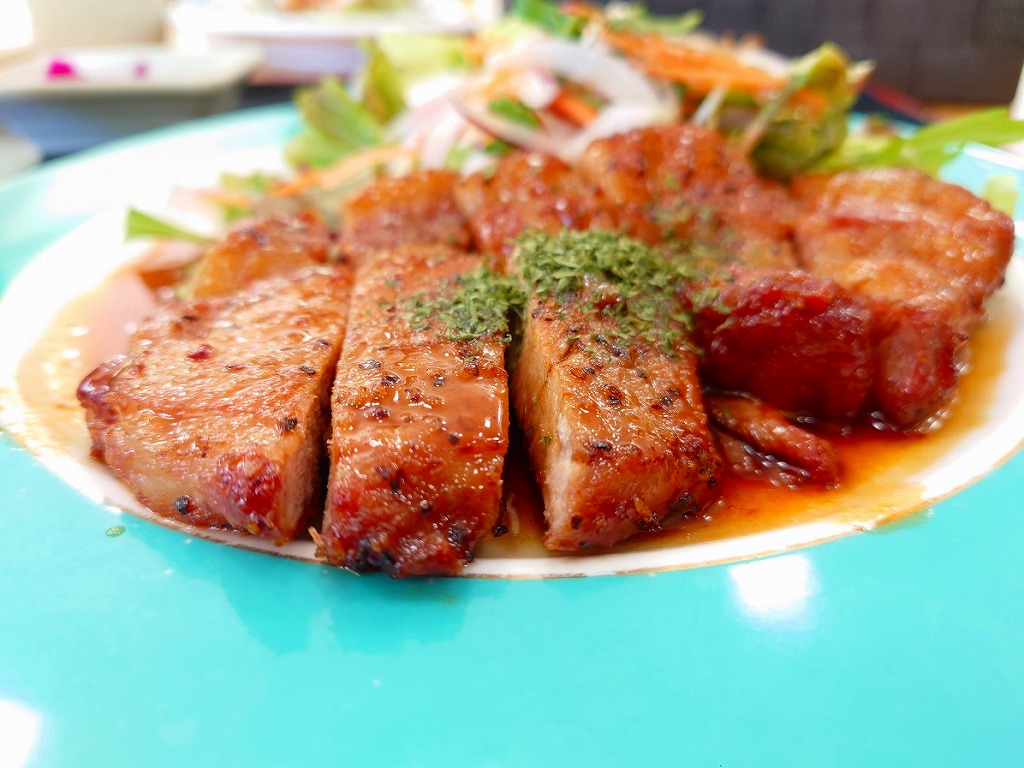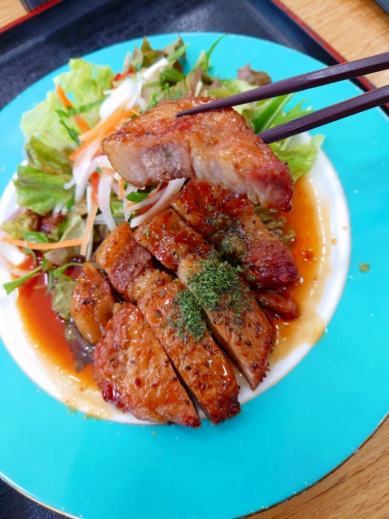 ハリセンボンさんの写真と同じビジュアルで、厚切りのとんてきでした。