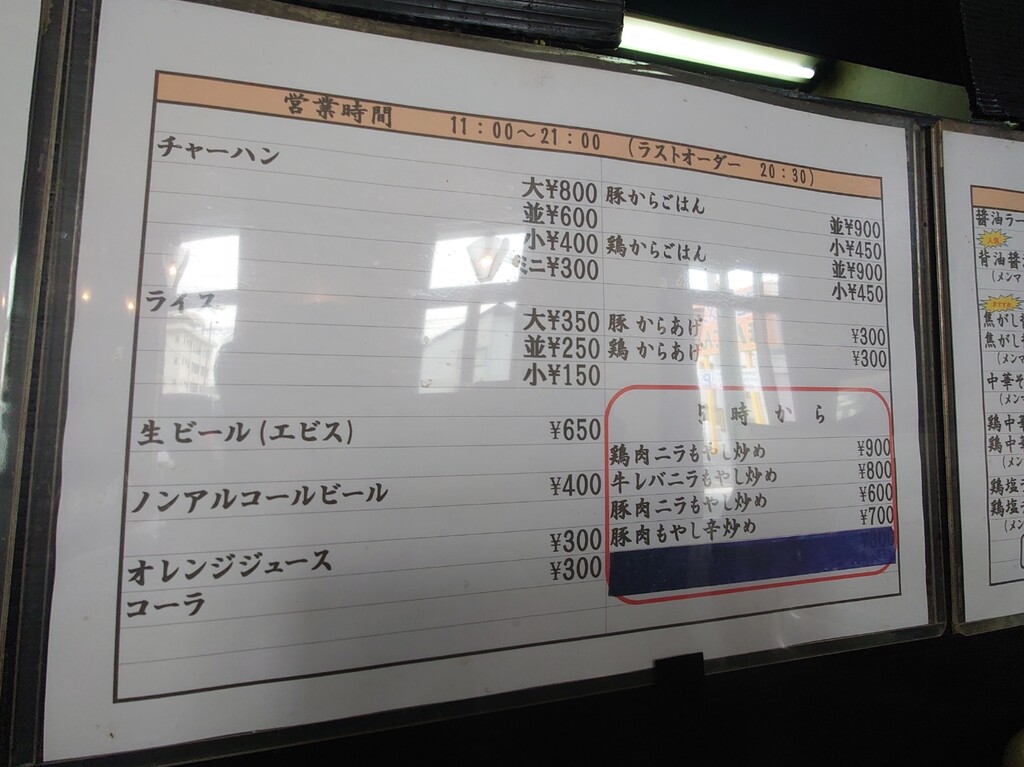 ↓お店に入り、メニューの一部はこんな感じでしたよ。