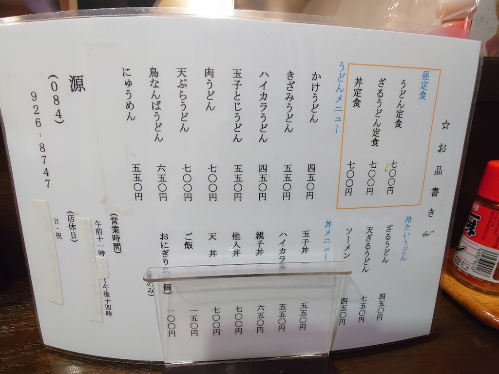 ↓お店に入り、メニューはこんな感じでしたよ。