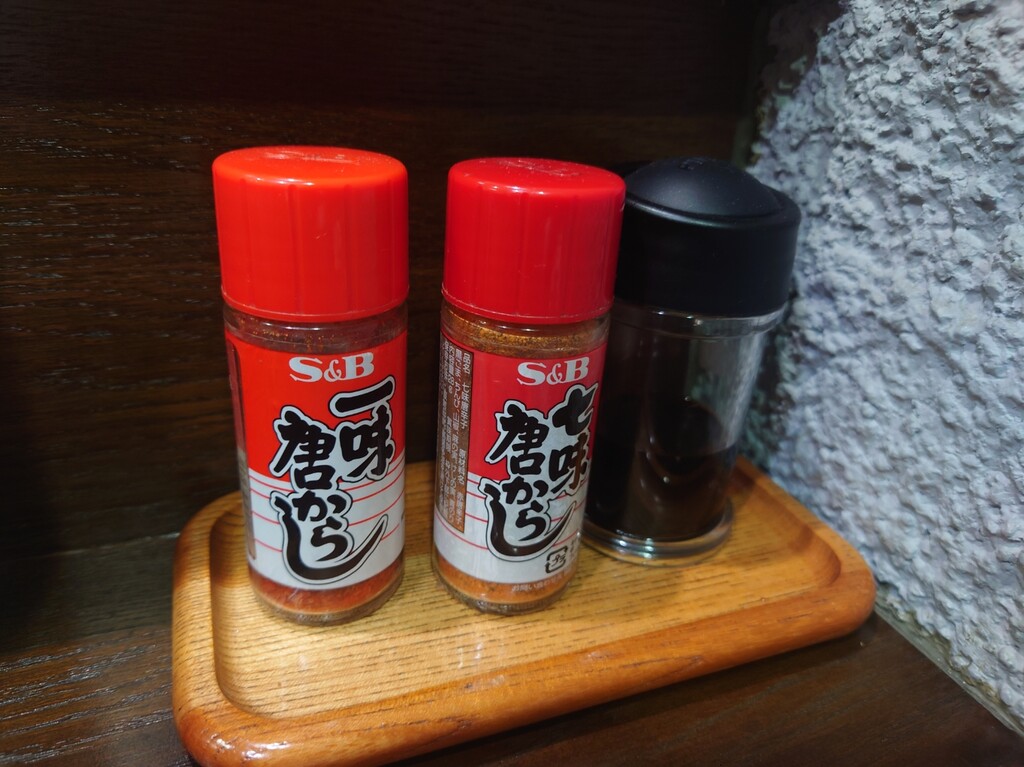 ↓カウンター席の調味料などはこんな感じ。