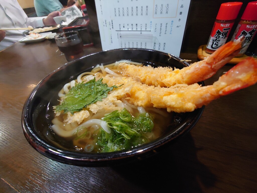 揚げたての立派な海老天はプリップリで最高♪