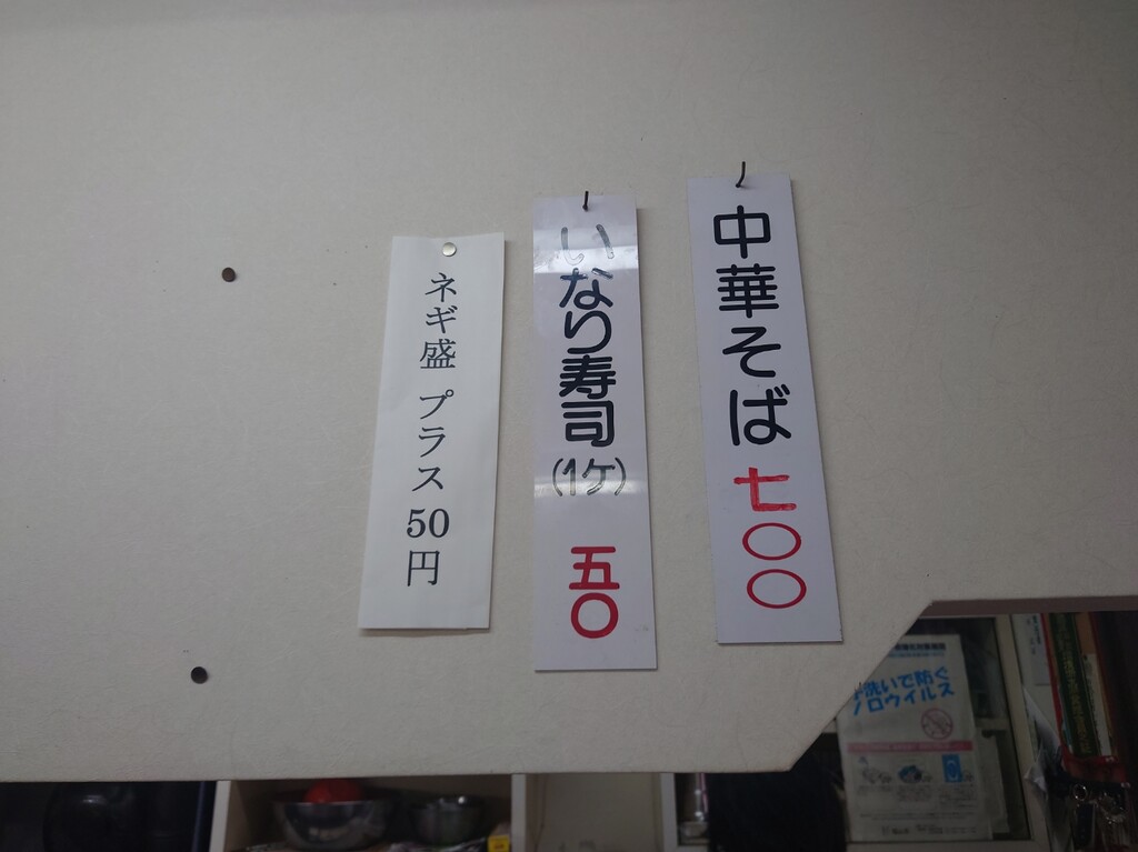 ↑ここは大盛りがないので「中華そば」¥700と「いなり寿司」2個¥100をお願いして支払いを済ませます。