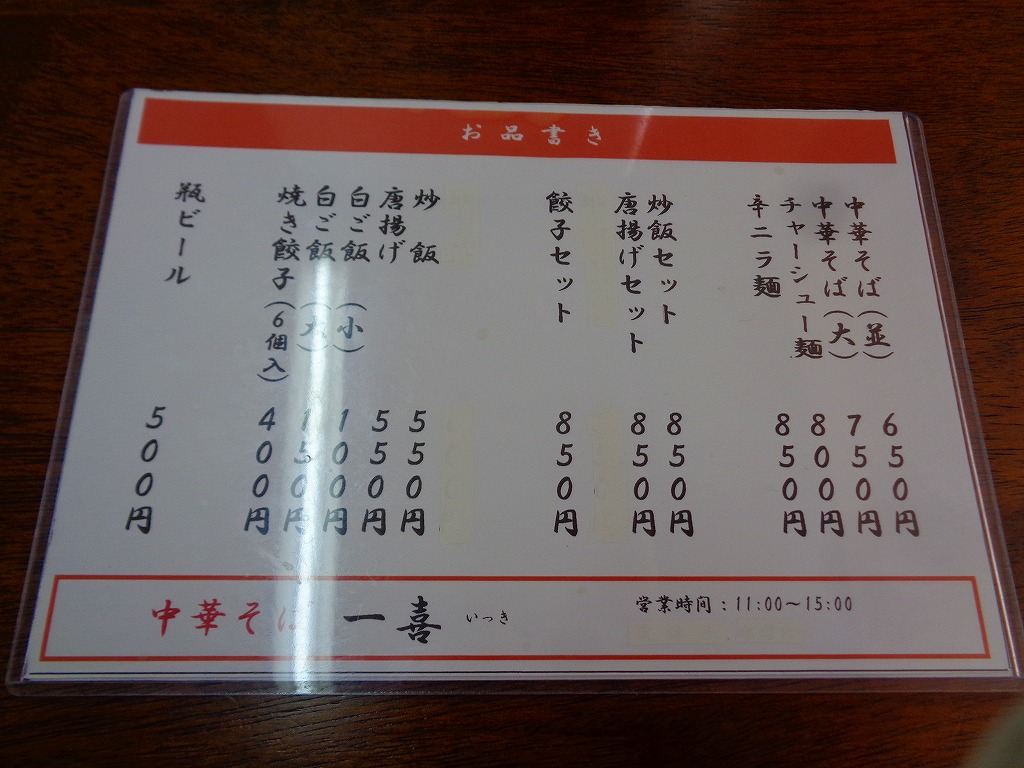 ↓お店に入り、メニューはこんな感じでしたよ。