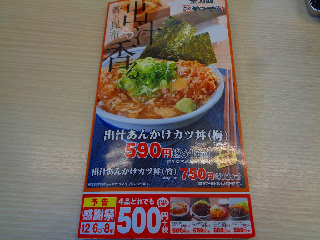 ↑今回は迷うことなく「カツ丼(竹)」¥869をお願いします(^^)