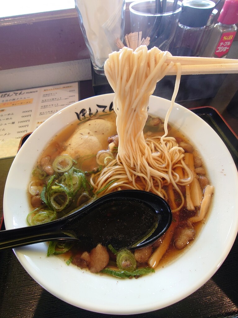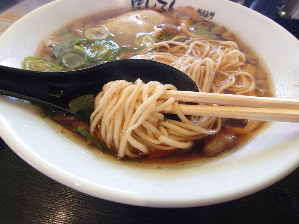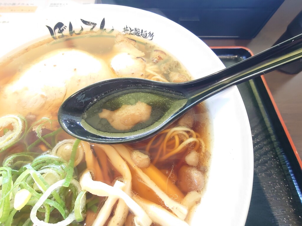醤油と出汁が薄くてあっさりスープ。ちょっと私の好みとははずれる一杯でした^^;