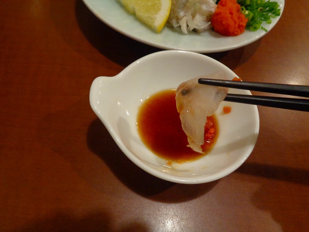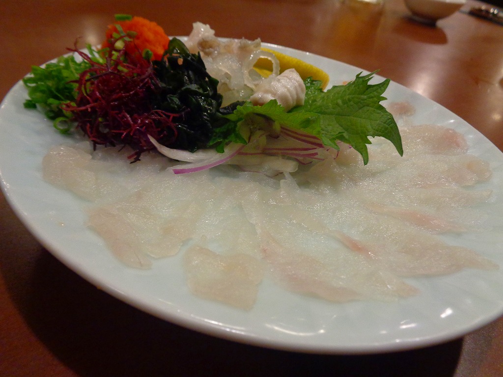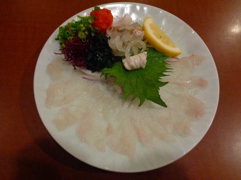 ↓料理で一番最初にお願いしたのは「ふぐ刺し」