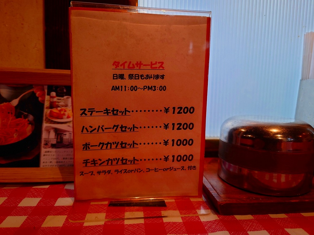 で、今回はタイムサービスの「ステーキセット」¥1,200をお願いします(^^)