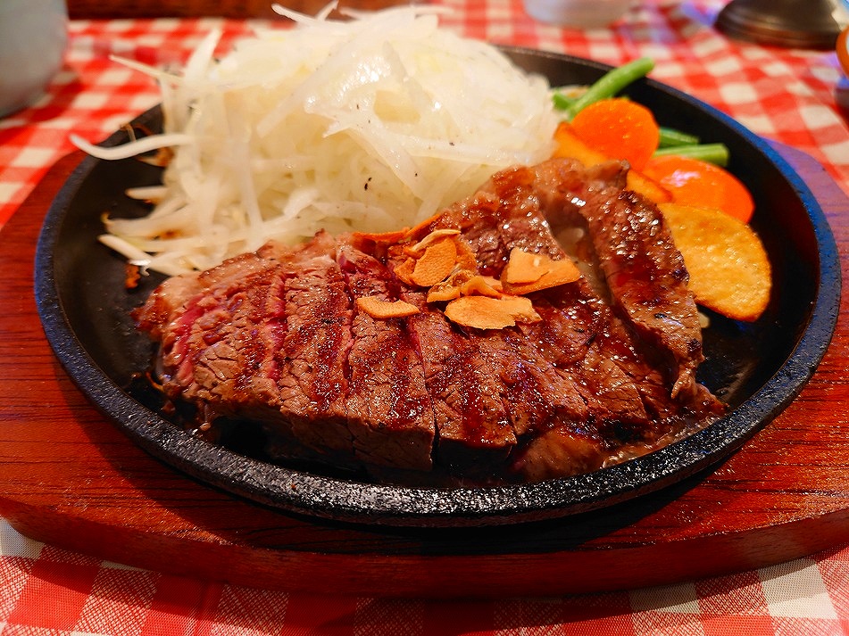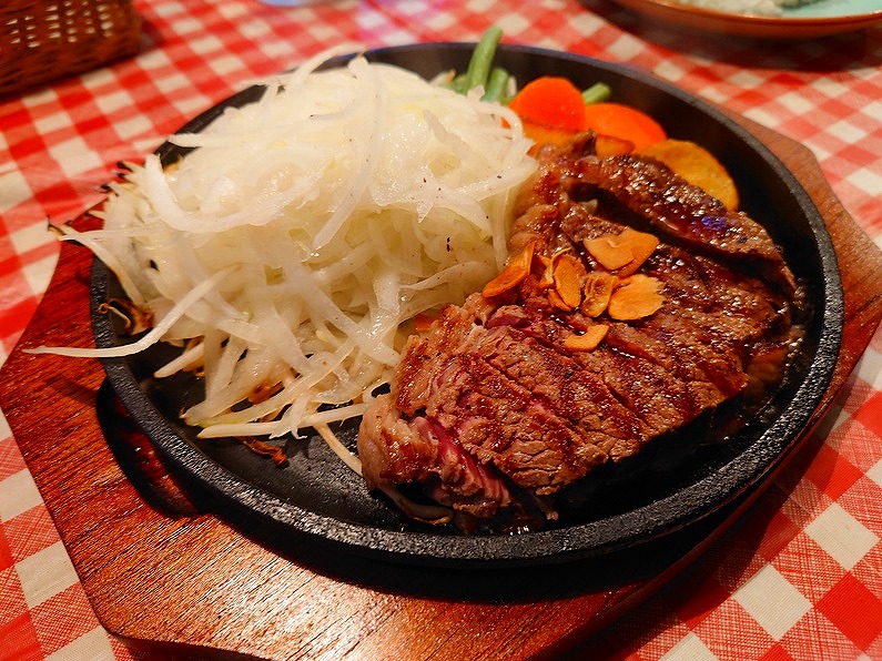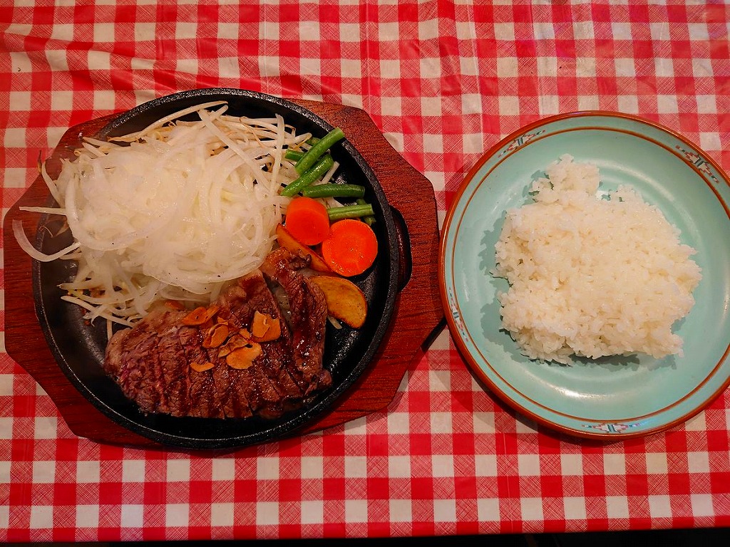 ↓そして、少し間が開いてからステーキとライスの登場で~す♪
