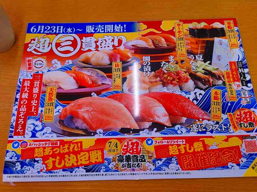 大体こういった回転ずしは相方と二人で2,000円台で収まるのですが、今回は珍しく3,000円を少し超えちゃいましたぁ~
