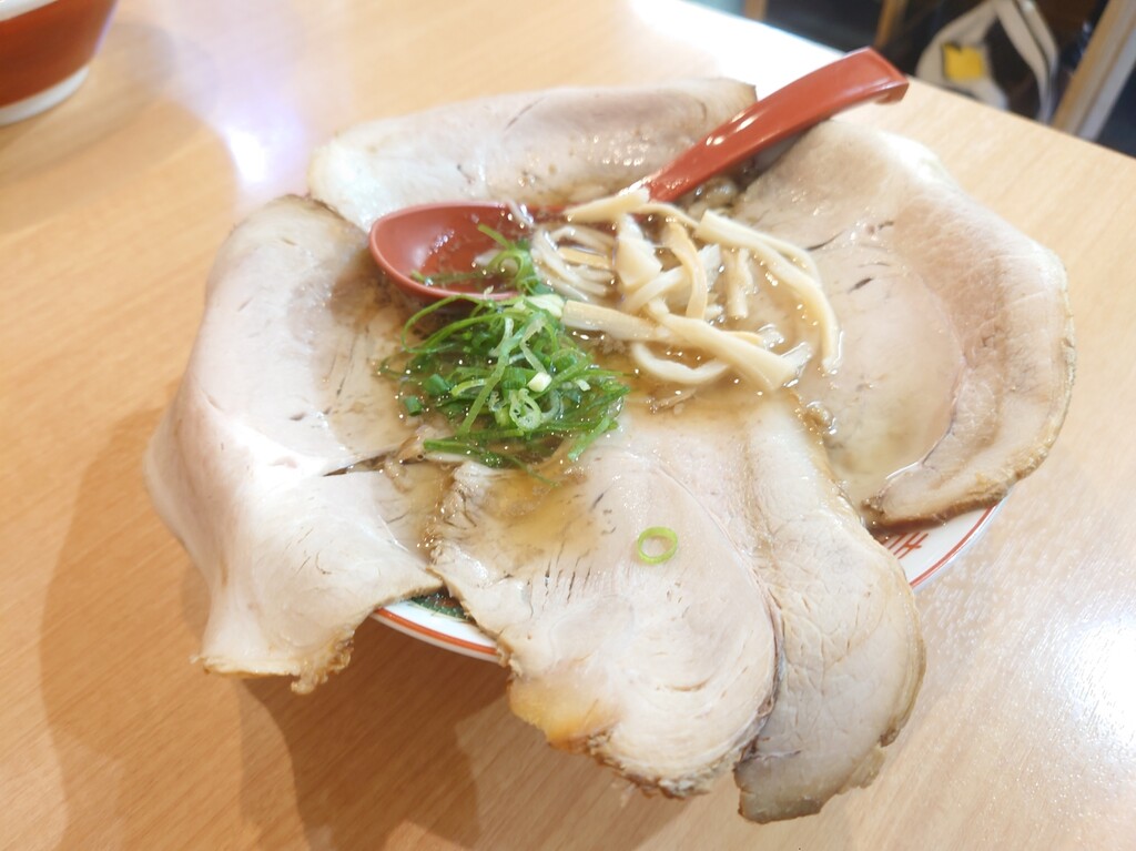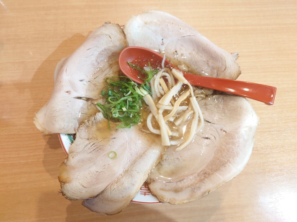 ↑大きいチャーシューに丼が覆われて見た目も豪華。