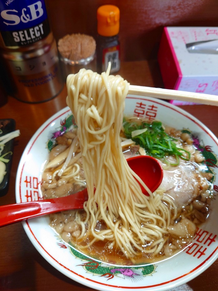 写真を撮り終えたら、食べ始める前に相方がラーメンを全部食べれそうにないとの事で、麺を半分くらい私にプレゼント。チャーシュー麺の大盛になって嬉しかったぁ~(^^)