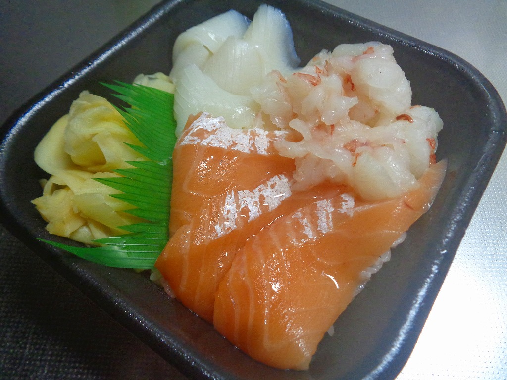 ↑サーモン・イカ・エビと好みのネタ3種で大満足♪