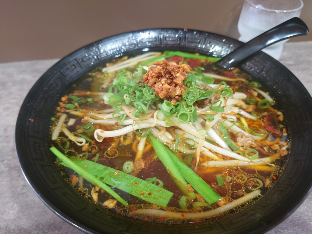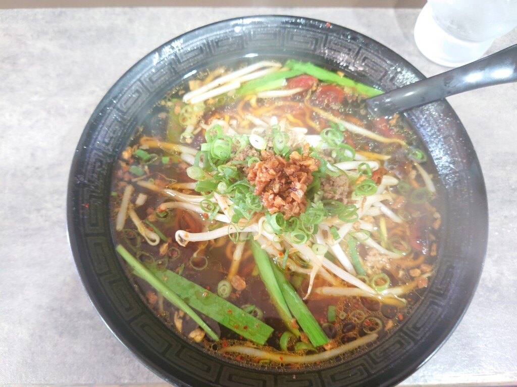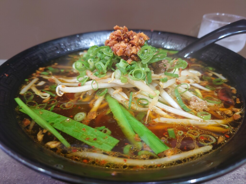 「黒ごま担々麺」と「台湾ラーメン」どちらにするか迷ったけど、今回は「台湾ラーメン・3辛」¥920と焼きギョーザ¥450をお願いします(^^)