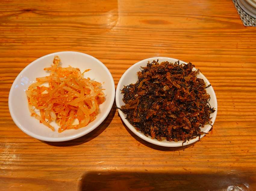 ↓豚骨ラーメンじゃないけど、セルフコーナーから辛もやしと辛子高菜を取ってきます。