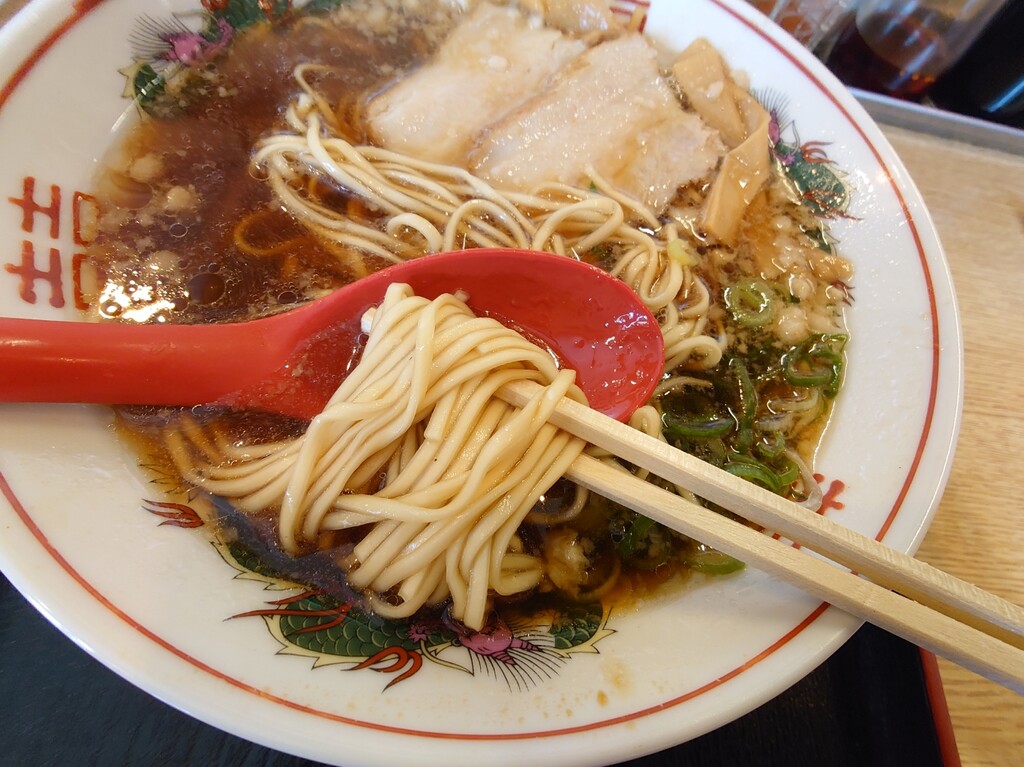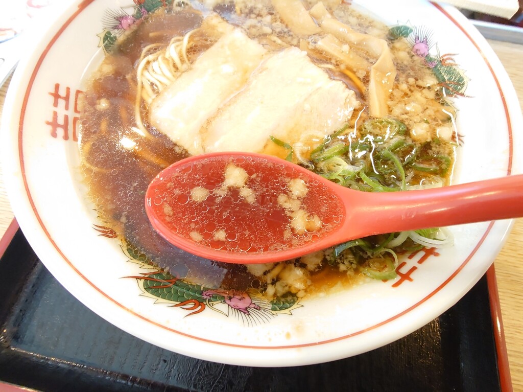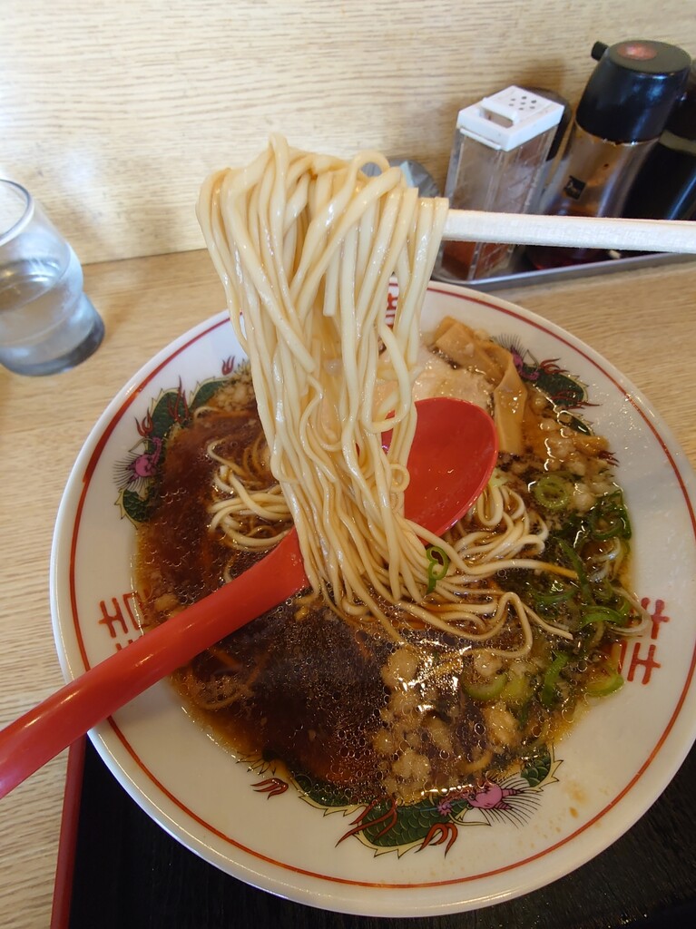 ↑醤油豚骨のようで、豚骨の香りがして結構な味の濃いさ。