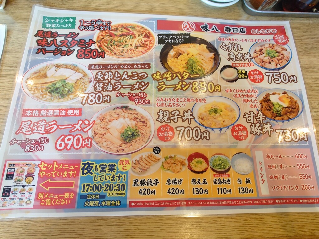 ↑何年も前、「味八食堂 多治米店」があった頃は数回行ったことありますが、こちらの春日店は初めて^^;