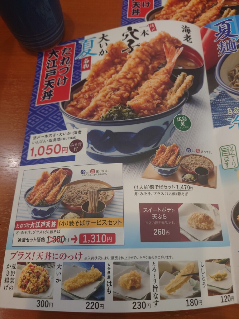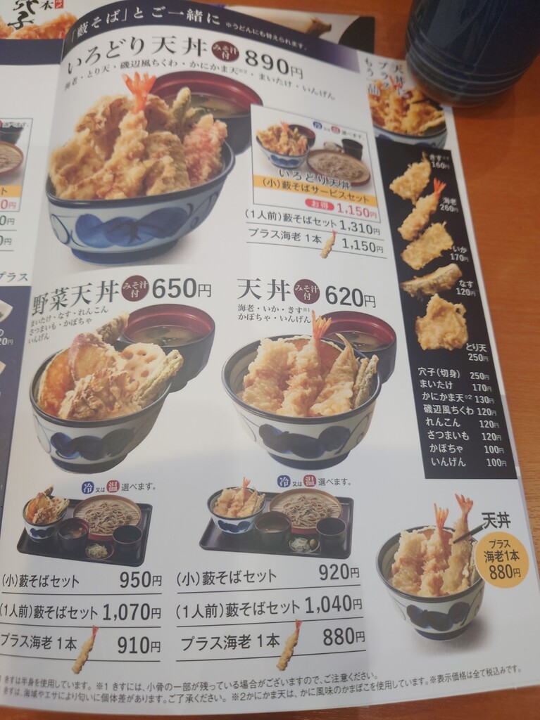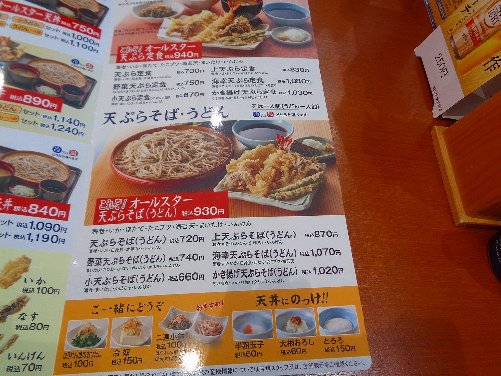 ファミレスでも揚げたてなので、美味しい天ぷら類♪