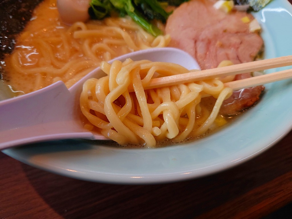 ↑結構太目の麺でツルツルしてるけどいい食感。