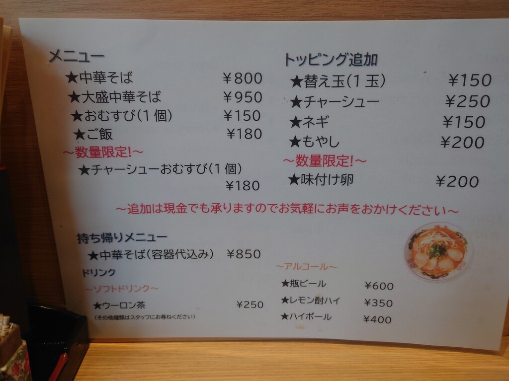 ↑辛モヤシは各席に置いてあるようですが、辛子高菜は見当たりません。