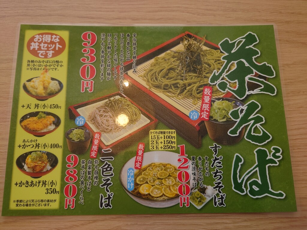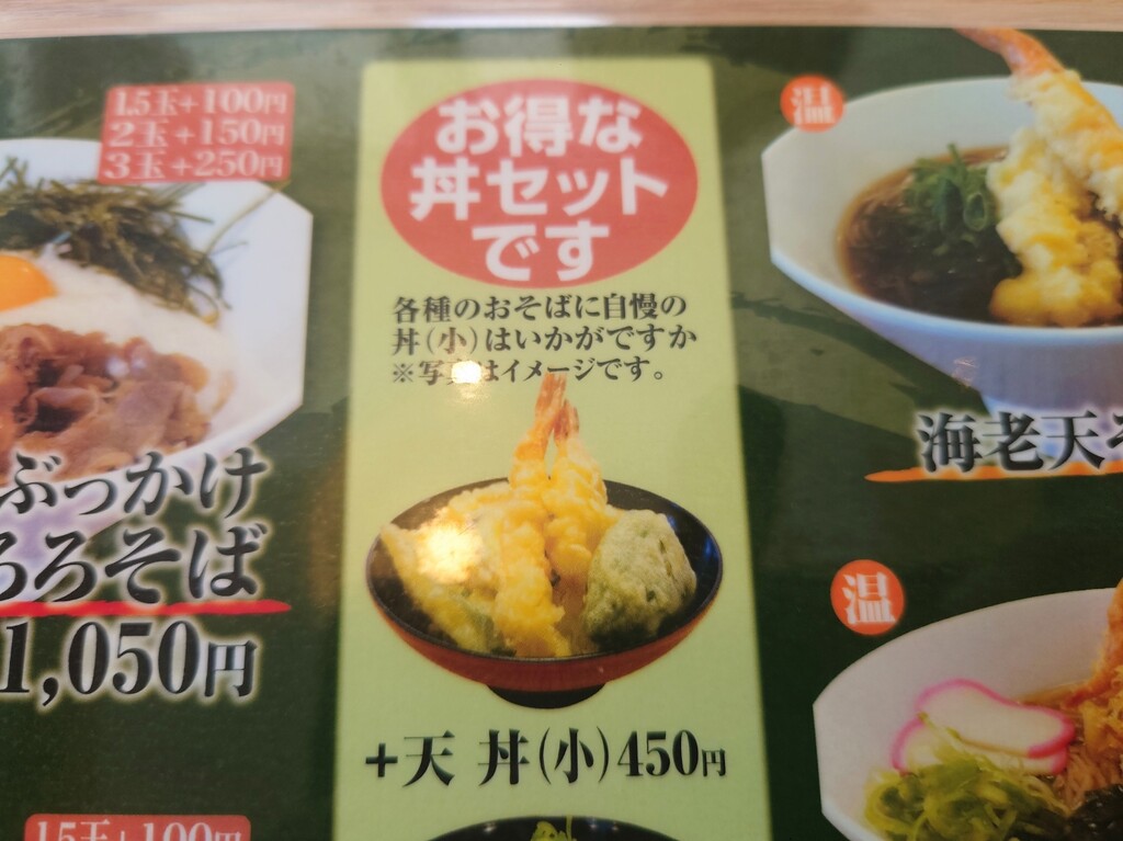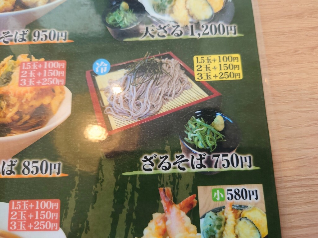 どれにするか迷った挙句、今回は「ざるそば1.5玉」¥850とセット用の「天丼(小)」¥450をお願いします(^^)