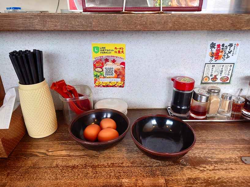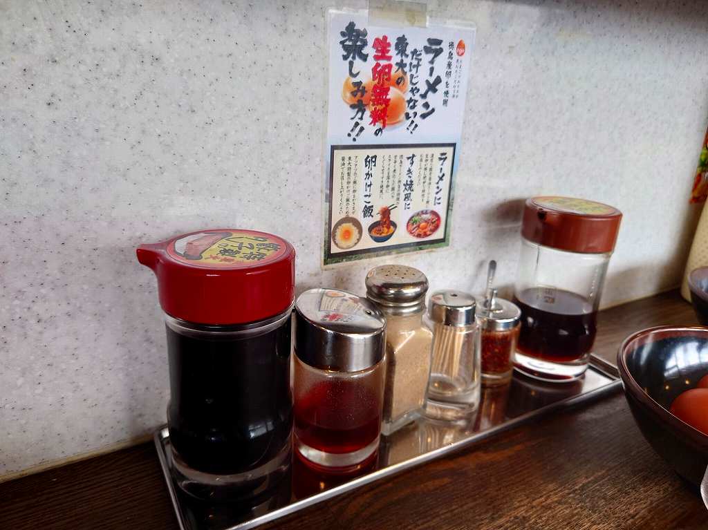 ↓座ったカウンター席の調味料などはこんな感じ~